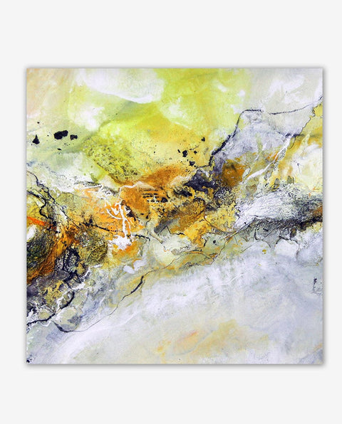 Filigrane Linien mit Zauberlack tragen und verbinden die kontrastierenden Bildelemente und leiten den Blick durch das Geschehen auf der Leinwand. Schritt für Schritt entsteht so eine spannende Abstraktion in ganz zarter Farbigkeit.