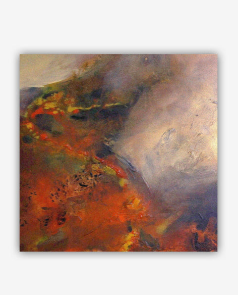 Über schwungvolle dunkle Farbspuren legt die Grazer Künstlerin Farbflächen in warmen Erdtönen. Bewusst gesetzte Helligkeiten komplettieren die Komposition. Die expressive Arbeit erhält so eine enorme Tiefenwirkung.