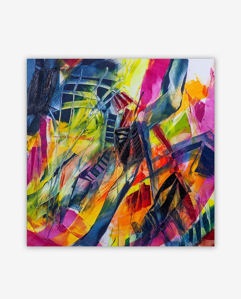 Gut fließende Farben werden in Streifen oder Flecken auf die Leinwand gebracht und mit einem breiten Colourshaper miteinander verrakelt. Es entstehen Hell-Dunkel-Räume, magische Durchblicke und wahre Farbexplosionen.