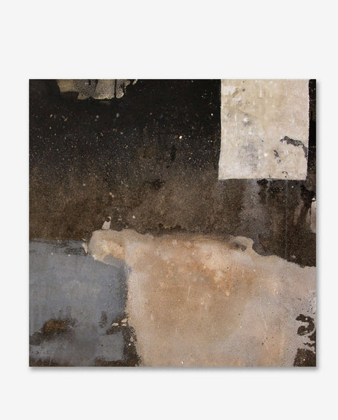 In diesem Online-Kurs arbeitet Ines Hildur mit Bitumen, Kaffee, Asche und Uropas Hemd. Das kleine Stück des Hemdes bekommt natürlich einen besonderen Platz in diesem Bild. Eine schöne Idee für alle, die Erinnerungsstücke ins rechte Licht rücken möchten und es passt sehr gut zu dieser staubigen Technik.